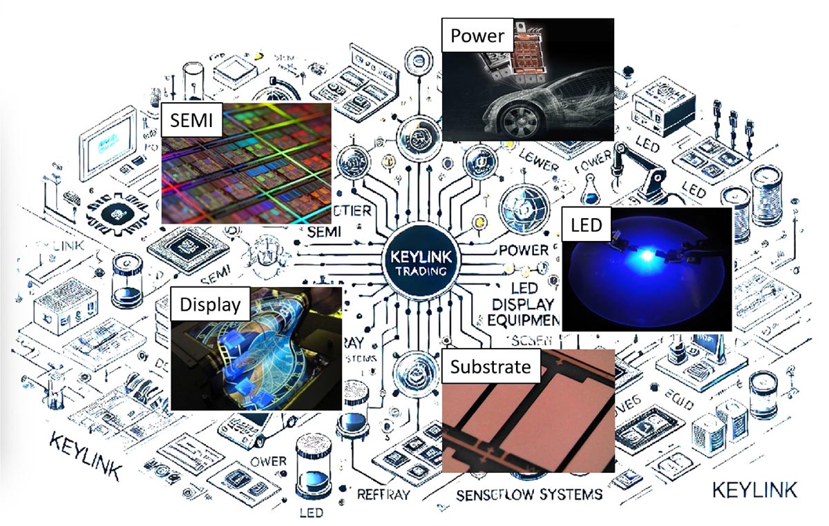 図に示されたKeyLink Tradingプラットフォームを通じて、技術・材料・設備・アプリケーションを密接に結び付け、ワンストップのサービスエコシステムを構築。